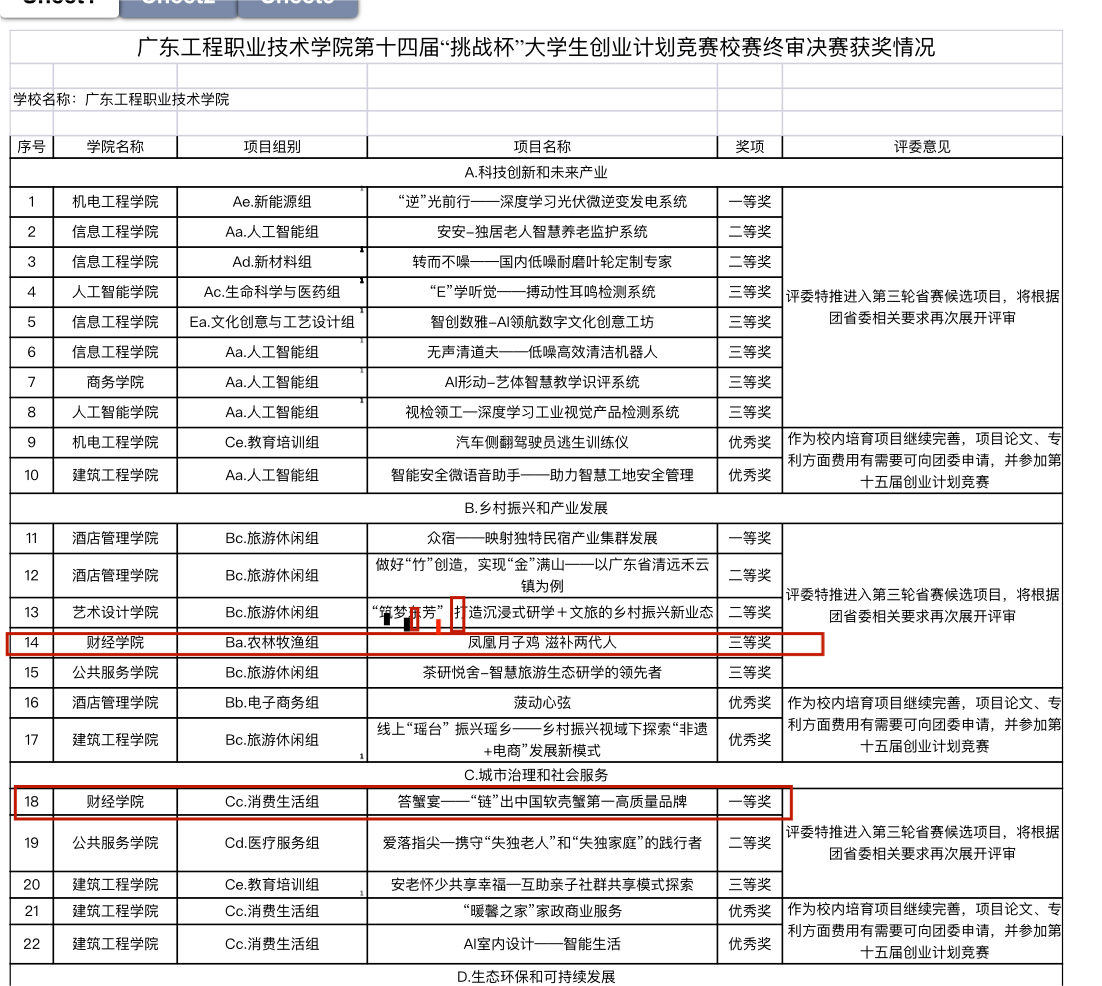 财经学院在广东工程职业技术学院第十四届“挑战杯”大学生创业计划竞赛校赛终审决赛中获一、三等奖