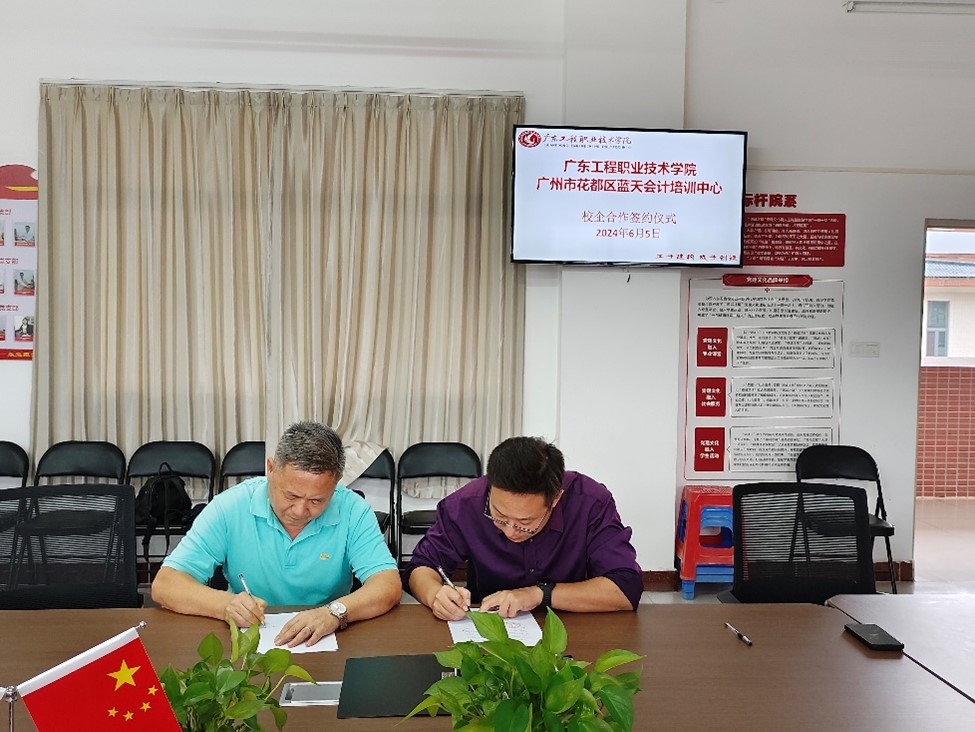 2024年6月5日,广东工程职业技术学院财经学院与广州市花都区蓝天会计培训中心,在广东工程职业技术学院清远校区4栋618举行校企合作签约仪式。这是继蓝天会计培训中心2024年3月来我校调研,财经学院2024年4月去蓝天会计培训中心访企托岗后,进一步深化。