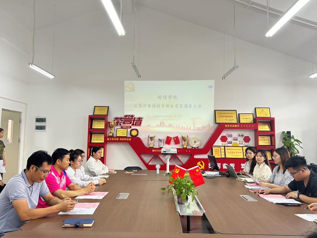 为深入贯彻落实学校党校关于党员发展工作的相关要求,继续加强党员队伍建设,进一步保证党员发展质量,深入推进党组织基层建设工作。2024年7月2日下午3点,财经学院在省职教城校区教学楼四栋618室召开了发展对象接收为预备党员通表大会,学生第一党支部全体党员和学生第二党支部全体党员、入党介绍人参加了本次大会,本次大会由学院党委专职组织员曾楚主持。