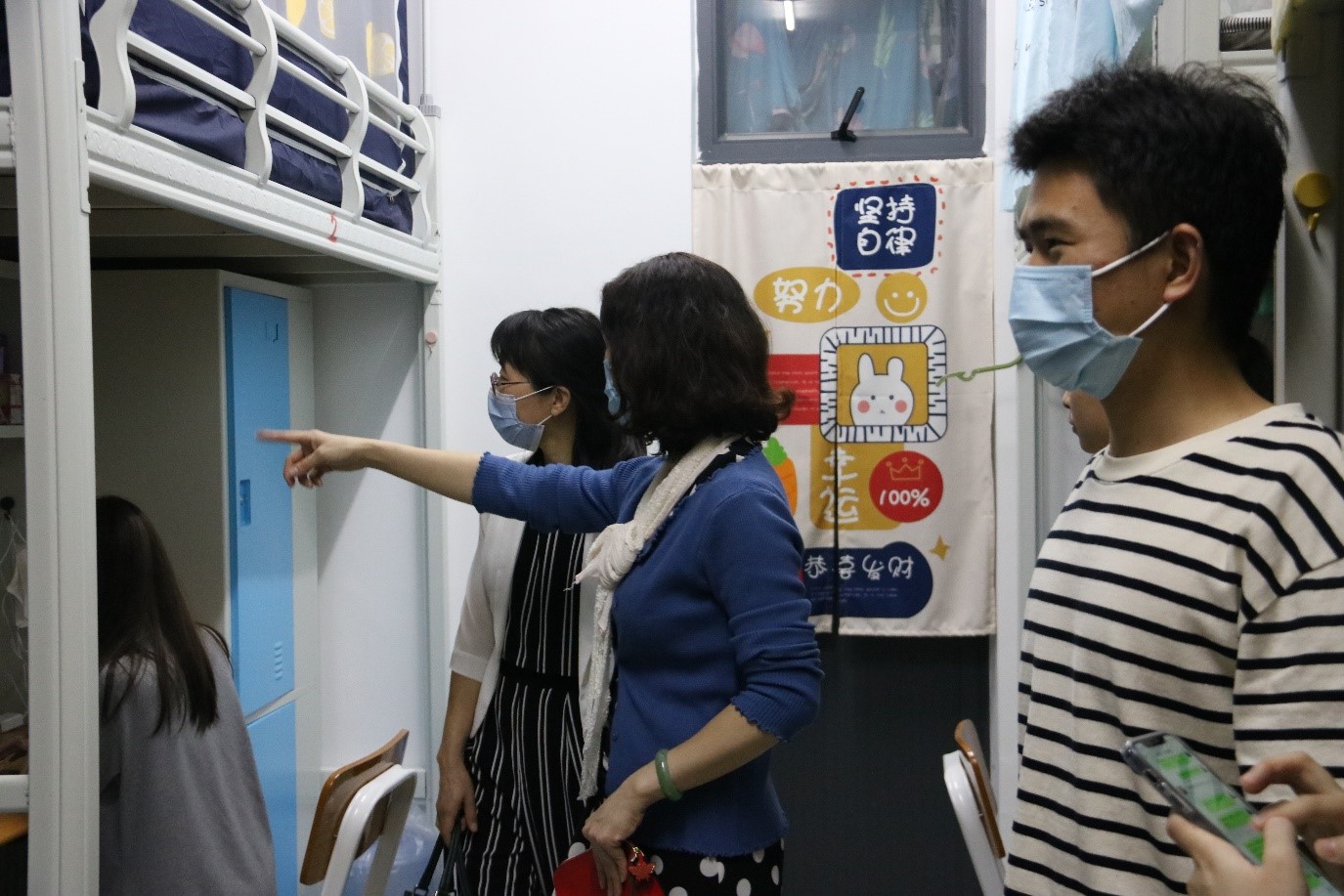 走访过程中,老师与同学们进行了亲切交流,详细了解学生情况,并为同学答疑解惑。同时叮嘱同学们要严格遵守疫情防控期间校园管理要求、做好疫情防控常态化下的自我管理和个人防护,养成良好的生活卫生习惯。指导同学们积极探索宿舍文化建设,营造积极健康的宿舍文化,保持身心的健康发展,共同营造安全有序的校园环境。