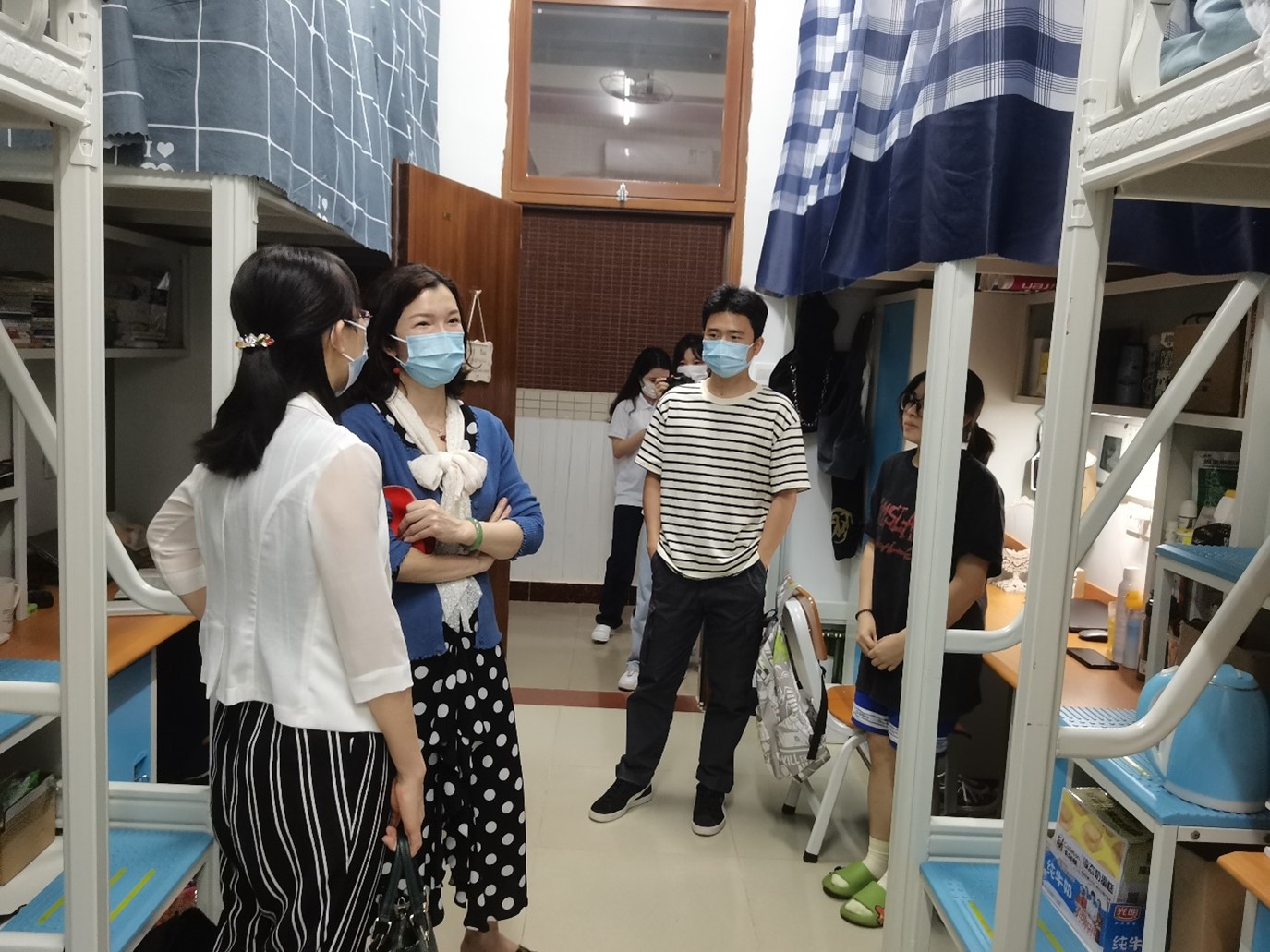 通过走访宿舍听取学生们的心声,学院领导和老师进一步了解了学生的实际需求,为接下来学院的教学与防疫工作的稳步推进打下了良好基础,也让同学们深切感受到家的温暖和学院的关怀,同学们纷纷表示,学院领导和老师们深入宿舍让他们深受鼓舞,今后会认真做好疫情防控常态下的个人管理,以阳光积极的心态、健康的体魄迎接今后的学习生活。