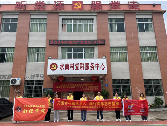 德诚才精暑假“三下乡”实践队在水南村党群服务中心前的合照