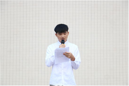 升旗仪式结束后,学生代表文伯敬以“担当时代新人,共筑国家安全”为主题进行了国旗下的主题演讲,他在演讲中提到,国家安全与每个人都息息相关,广大青年学生应当深入学习贯彻党的二十大精神,坚持以总体国家安全观为指导,树立国家安全意识,维护国家安全,强化责任担当,铭记自身的时代责任和历史使命,在践行总体国家安全观的行动中放飞理想,与新时代同向同行、共同前进,为筑牢国家安全防线贡献青春力量。
