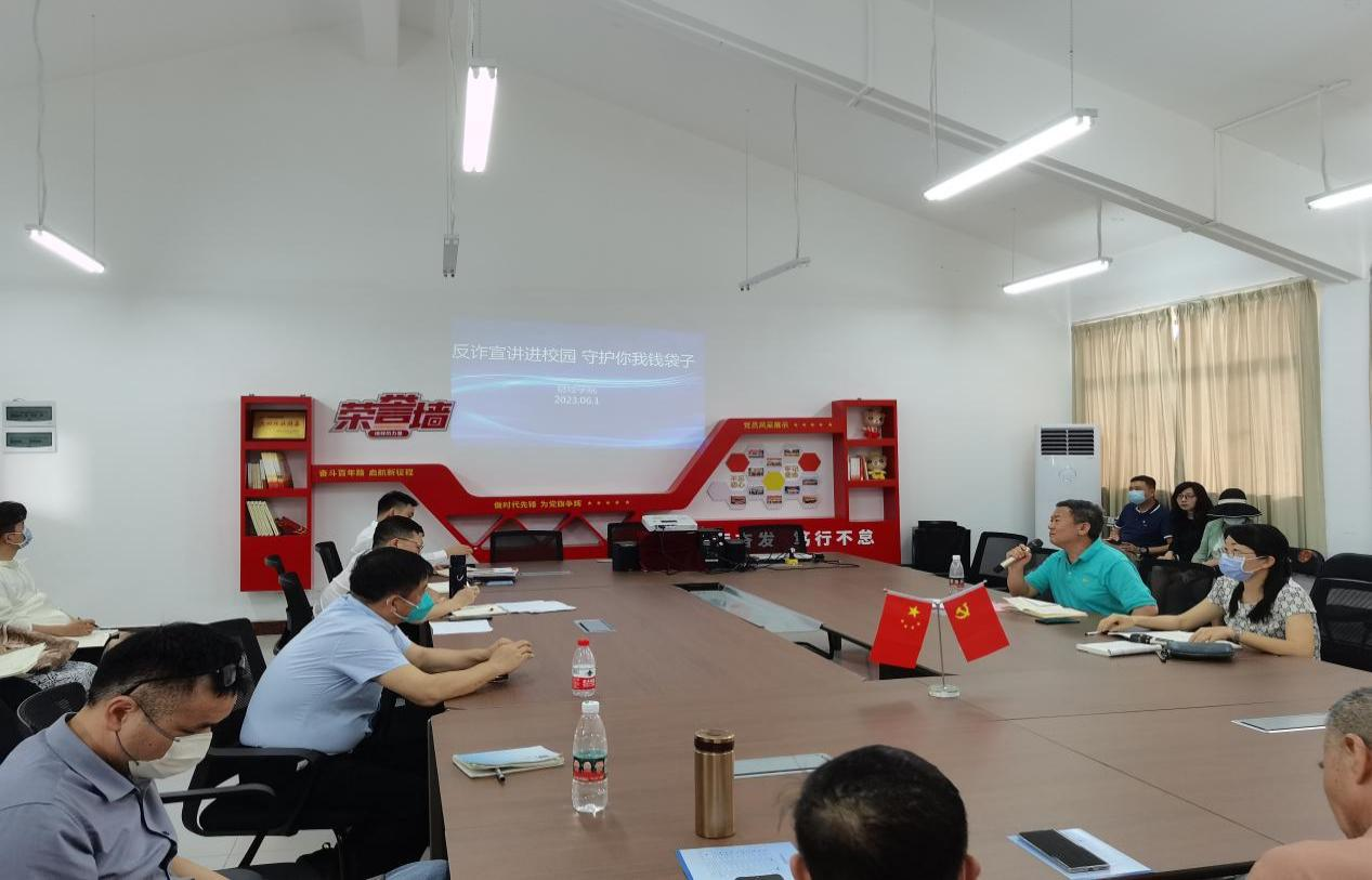 会上罗汉红副书记传达了广东省教育厅关于加强反诈 骗警示教育的通知精神和学校关于做好反诈宣传工作的相 关要求。她首先通过介绍近期发生的诈骗案例,强调电信网络诈骗严重危害社会和谐稳定,严重扰乱社会治安,严重危害人民幸福,是阻碍全面实现中国式现代化的绊脚石。全体教师应高度重视防范电信网络诈骗的工作,加强法律意识,警觉身边各类诈骗行为,杜绝诱惑,防止受骗。同时,全体成员认真履行工作职责,利用主题班会、公众号做好反诈骗宣传教育活动,引导学生切实提高对网络电信诈骗的识别和防范能力,全面提升广大师生识骗防骗的意识,守护好个人信息和财产,共同筑起维护校园稳定与安全的防护墙。