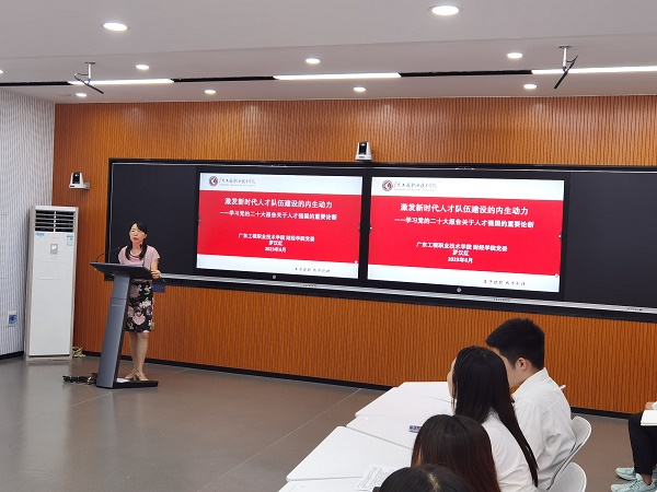 座谈会后,财经学院党委副书记罗汉红,为2023届毕业生党员上了一堂题为“激发新时代人才队伍建设的内生动力——学习党的二十大报告关于人才强国的重要论断”的主题党课,勉励大家传承红色基因,立志荣校报国,成就精彩人生。