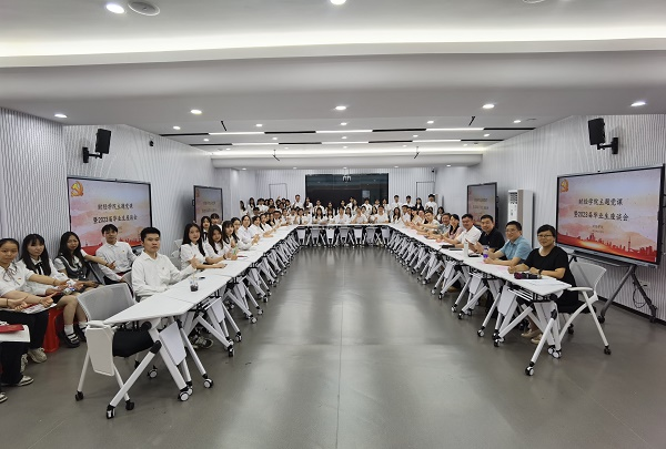 2023届毕业生即将扬帆启航之时,为更好地学习贯彻习近平新时代中国特色社会主义思想,增强毕业生党员的责任感和使命感;更好地倾听毕业生心声,充分了解毕业生学习、生活、就业情况,不断强化学院就业育人、管理育人、服务育人的针对性与实效性,6月19日下午,财经学院在广州校区教1-204开展了主题党课暨2023届毕业生座谈会。学院班子成员、办公室主任、专业负责人、辅导员、教务员、全体毕业生党员、优秀毕业生代表、校友联络员、21级22级学生代表出席此次活动,活动由林密蒲老师主持。