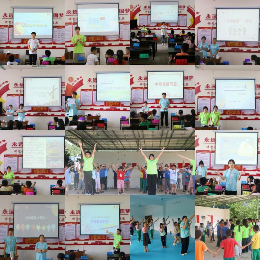 为全面学习贯彻习近平新时代中国特色社会主义思想,贯彻落实党的二十大精神,引导青年学生主动投身到乡村振兴实践中去,在实践中“受教育、长才干、作贡献”。7 月 24 日-8 月 4 日,在羊城晚报报业集团驻梅州五华龙村镇帮扶工作队、水南村村委等单位的支持下,财经学院伴我“童”行志愿服务队、“三下乡”社会实践队及“德诚才精”筑梦队师生 19 人奔赴梅州市五华县龙村镇水南村开展为期10 天的七彩假期、暑假“三下乡”、国家资助政策下乡行等社会实践服务活动。