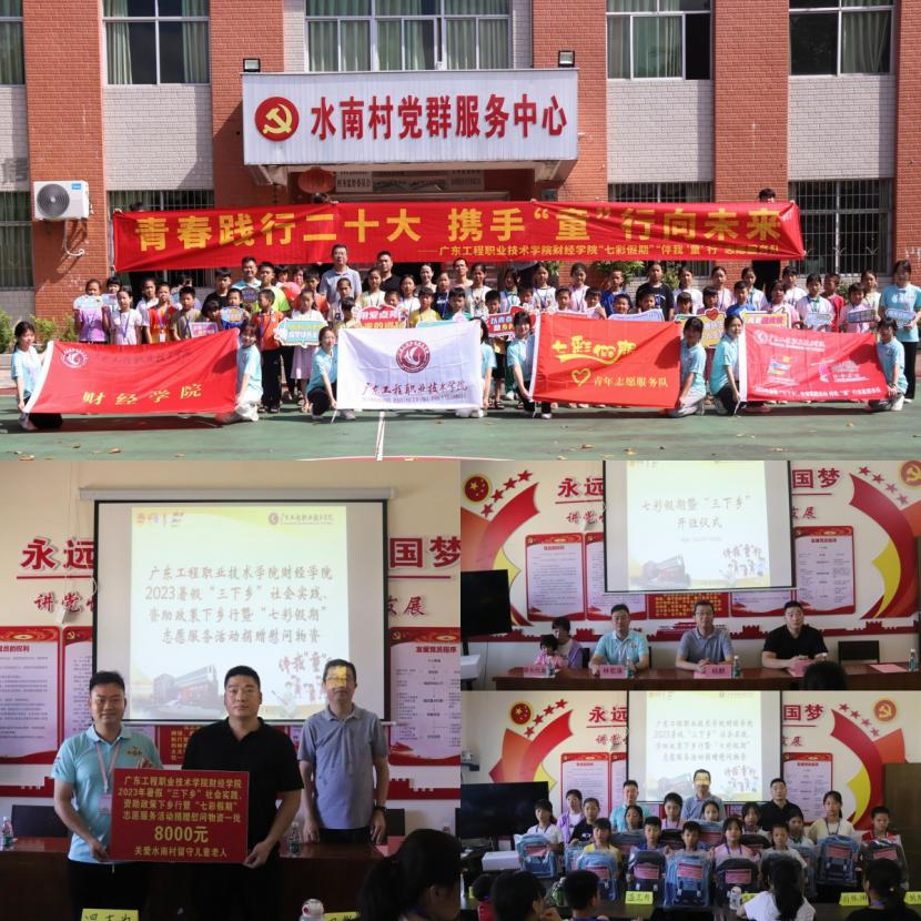 时光匆匆,8月4日,广东工程职业技术学院财经学院“七彩假期”暑假三下乡社会实践活动圆满结束。本次“三下乡”社会实践队共由 19 名师生组成,实践服务过程内容全面而丰富,这是我院第二次奔赴梅州五华县龙村镇水南村开展“三下乡”社会实践活动。在活动总结会上,驻镇帮扶工作队、水南村村委、在场家长都向实践队抛出了橄榄枝,纷纷表示希望实践队今后能够常来水南村开展社会实践活动,传递更多的爱心温暖,进一步推动水南村的发展。实践队也表示,在三下乡这段时间里,队员们深深感受到当地村民的热情好客,非常难忘 10 天的相处,同时自身在实践过程中增长了才干,加深了对乡村振兴的认识。财经学院团委也将继续借鉴党建校地共建的模式,筑牢社会实践阵地,赋能乡村振兴,将更多的优秀青年学子带到水南村来开展乡村振兴等活动,让更多的青年积极投身乡村振兴国家战略。