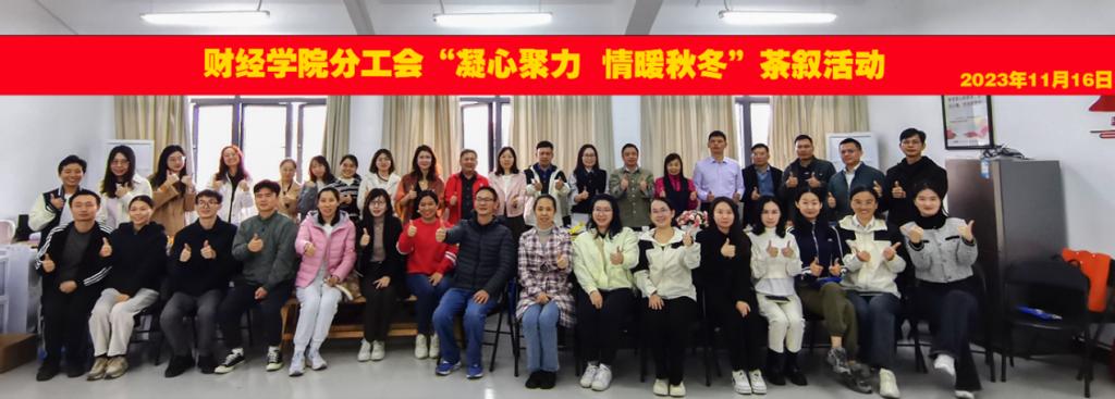 2023年11月16日下午,财经学院分工会在省职教城校区Q4-618职工小家举办了一场别开生面的茶叙活动。本次活动以“凝心聚力,情暖秋冬”为主题,旨在为教职工繁忙的工作中提供一次放松身心的机会、丰富业余生活,加强团队凝聚力,提升教职工幸福感,以饱满的精神状态投入到学校的“双高”建设中。财经学院班子成员及其他分工会会员共同参加此次活动。