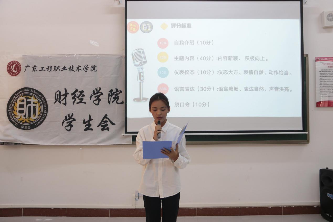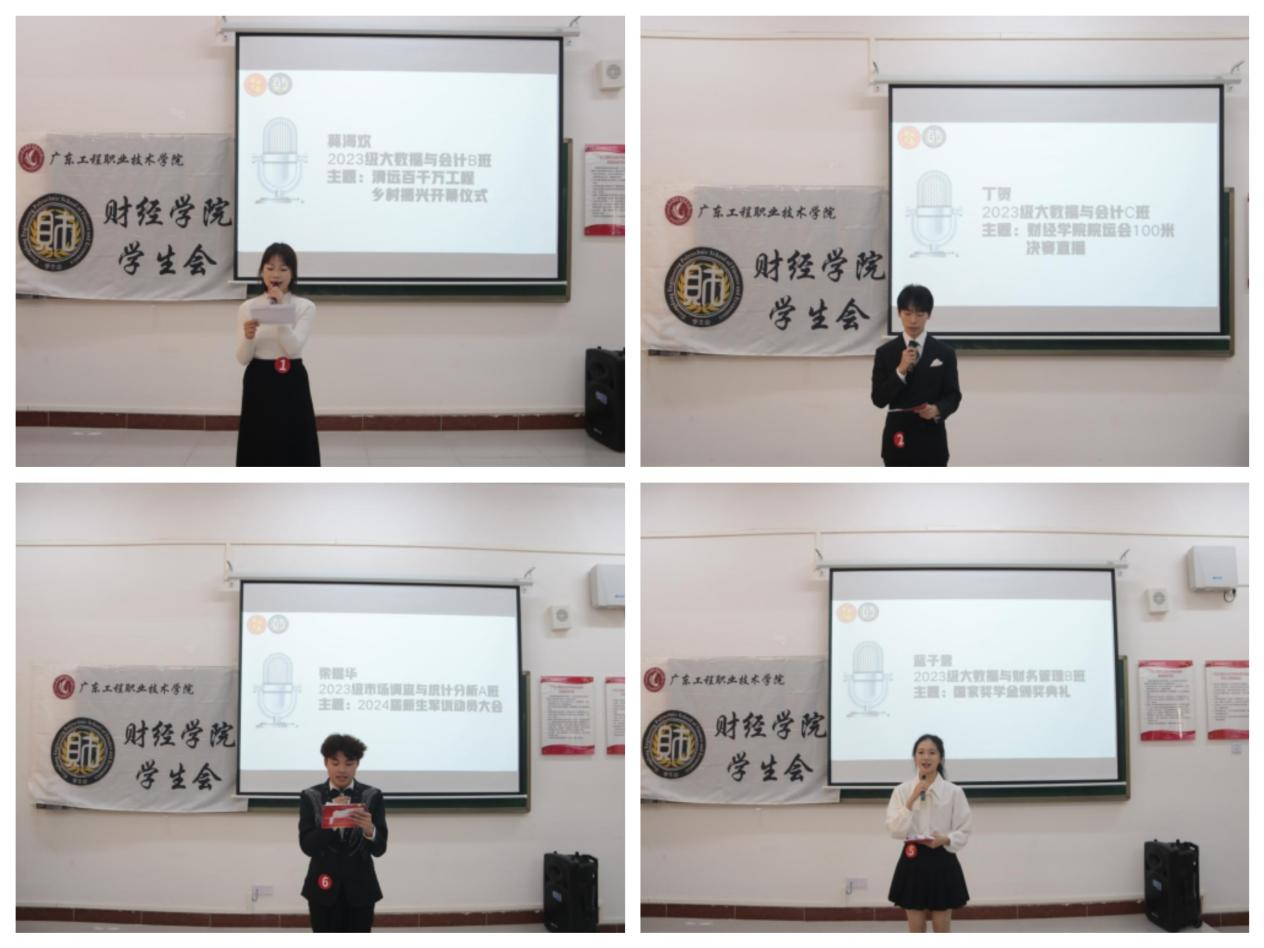 启航新征程,逐梦再出发。为丰富同学们的校园生活,展现财经学院学子青春、热情的面貌。12月12日下午,财经学院第二届“德诚才精杯”主持人大赛决赛在省职教城校区Q1-112室成功举办。此次决赛包含自我介绍、绕口令以及主持内容环节。学院党总支副书记罗汉红、全体辅导员、参赛选手和各班级学生代表出席本次活动,由辅导员老师、校工程之声广播台成员黄娜和主持人队长蒋盈担任评委。
