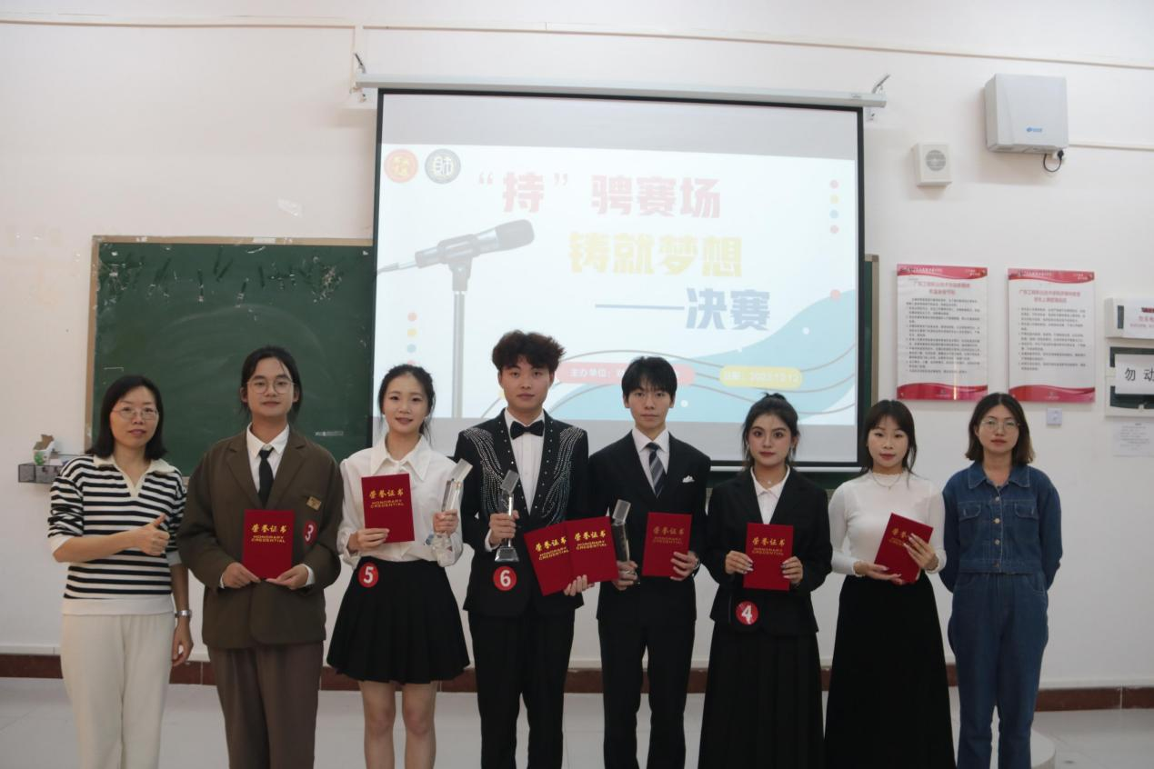 经过评委的严格评审和现场观众的线上投票,最终由来自2023级市场调查与统计分析A班的梁耀华、2023级大数据与会计C班的丁贺以及2023级大数据与财务管理B班的蓝子君同学分别获得一等奖、二等奖和三等奖,其余选手分别获得优秀奖和最佳人气奖。学院党总支副书记罗汉红和辅导员老师分别为获奖同学颁奖并合影留念。