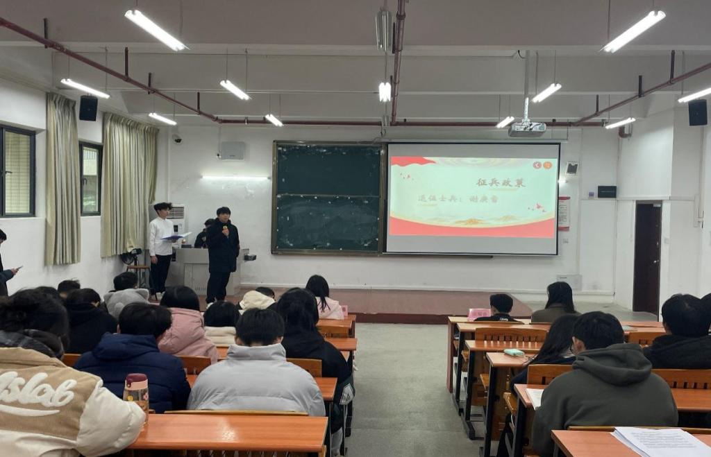 2024年春季征兵工作已经开始,财经学院积极响应号召,于12月21日下午16:00在省职教城校区教学楼1栋105召开了征兵宣传动员大会。财经学院全体辅导员、退伍士兵以及各班级代表参加了本次动员大会。