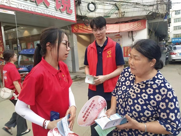 在活动前期,筑梦队积极主动与当地政府联系,与国家开发银行广东省分行工作人员一起,把宣传摊位选择在人流量较为密集的区域。7月11日下午,筑梦队前往梅州市五华县龙村镇人民政府设立“资助政策咨询点”,通过悬挂宣传海报,派发资助宣传手册和小礼品等吸引人流量,向现场的学生、家长们宣传国家奖助学金、生源地贷款等一系列国家资助政策。活动期间,虽酷暑难当,但小伙伴们依旧热情耐心地为围观的群众讲解各类国家资助政策。