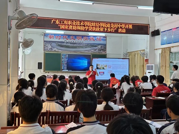 为全面贯彻党的二十大提出“完善覆盖全学段学生资助体系”的要求,加大我省学生资助及助学贷款政策的宣传力度,普及国家资助和助学贷款政策,帮助每一个经济困难家庭,圆寒门学子升学梦。7月11日,广东工程职业技术学院财经学院国家资助和助学贷款政策“下乡行”——“德诚才精”筑梦队在梅州市五华县龙村中学开展“国家资助伴你成长,助学贷款助力成才”的国家资助和助学贷款政策下乡行活动。