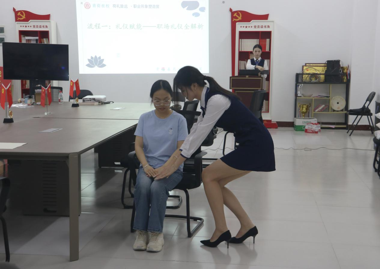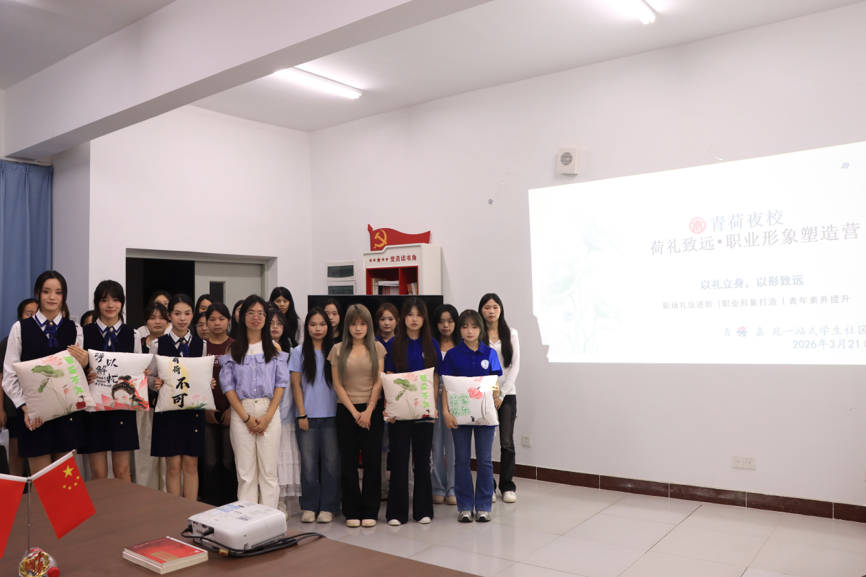 “青荷夜校” 是 “青荷嘉苑” 一站式学生社区精心打造的青年素养提升品牌,秉承 “以文化人,笃行致远” 的育人理念,整合校企资源,贯通职业-专业-就业渠道,将职业素养教育融入日常社区生活。作为夜校首发模块,“职业形象塑造营” 精准锚定学生职场起步关键需求,以礼仪规范、形象管理为切入点,通过小切口撬动大成长,探索出一条 “场景化育人、实践化赋能” 的全新路径,让职业素养培育润物无声。