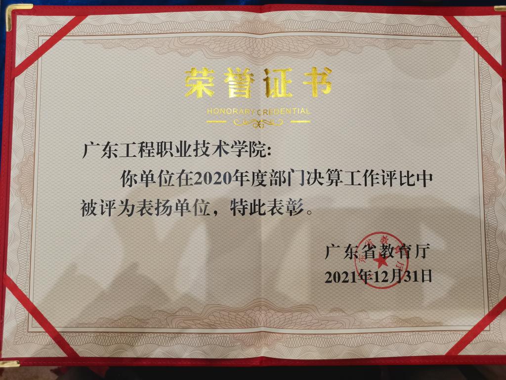 2022年1月10日,在广东省教育厅组织召开的2020年度财务决算总结会暨2021年度财务决算编报业务培训会上,我校被授予“2020年度部门决算工作表扬单位”荣誉称号。
