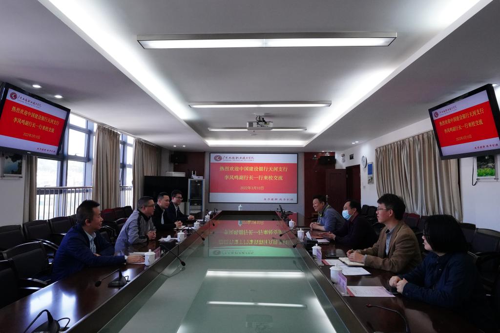 3月10日上午,中国建设银行广州天河支行党委委员、副行长李风鸣等一行4人来我校交流。副校长揭英荣、财务处、教育技术与信息中心等部门负责人参加了座谈会。