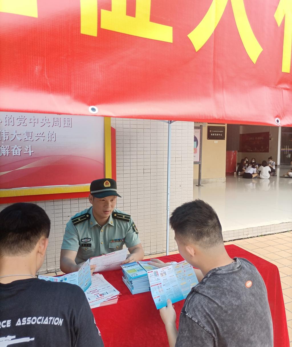 活动现场还设立征兵宣传点。“退役后有什么优惠政策?”“参军入伍要什么身体条件?” 南沙区人武部和学校宣传部(武装部)工作人员一一为同学们答疑释惑。活动现场还放发了《征兵宣传手册》等宣传资料。