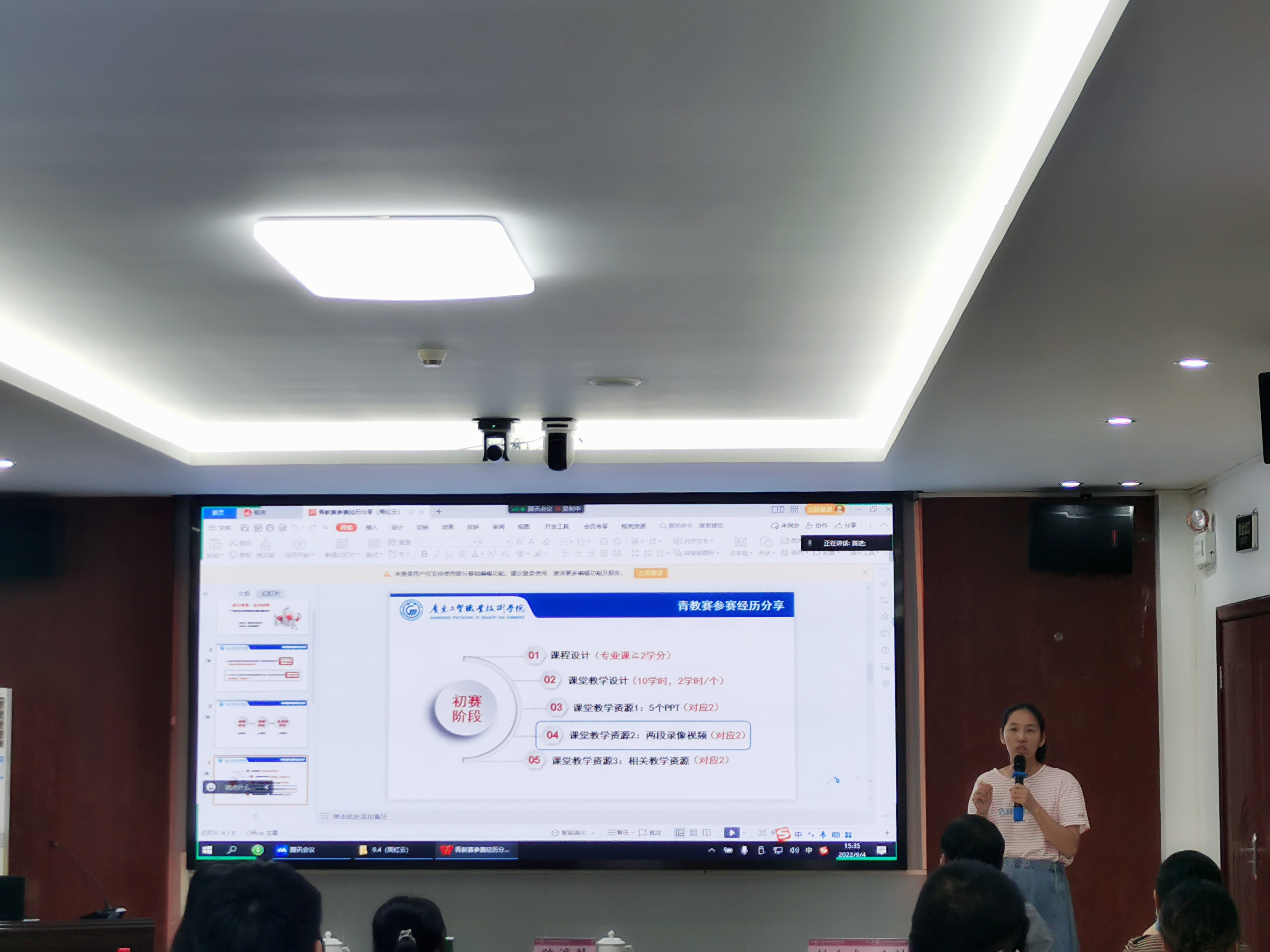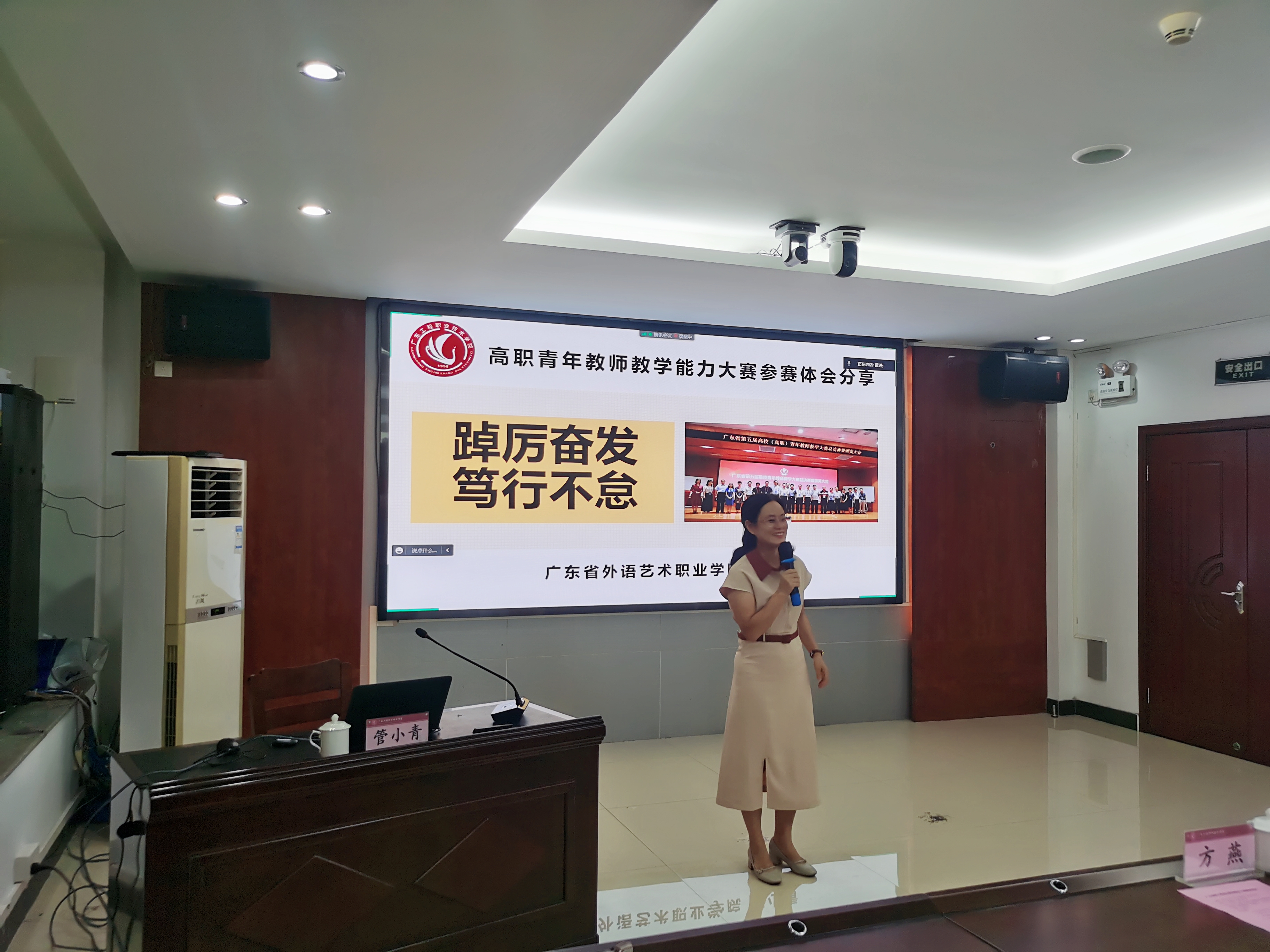 管小青以“踔厉奋发,笃行不怠”为题,重点讲解了今年青教赛参赛指标,并用自己的参赛经历详细讲解比赛如何准备,细节如何把控,材料如何选择,得分点如何获得。