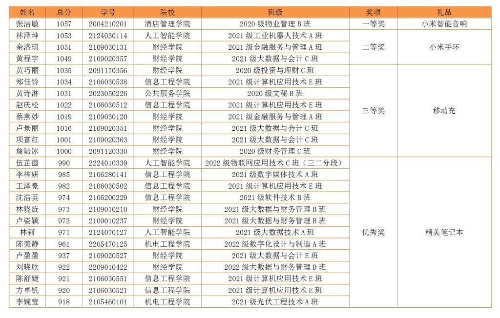 在“百年党史 共忆荣光”线上党史知识竞赛中,通过以赛促学的形式,在超星学习通APP上设立“百年党史 共忆荣光”线上党史知识竞赛小组,读者们每天利用课余的闲暇时间一起学习党史,学习之后再一起参加党史知识竞赛。此次活动通过线上党史知识竞赛小组开辟了党史学习教育“新阵地”,实现了从“灌输式”向“互动式”学习的转变。活动采用为积分累计制,以答题累计得分成绩排序,最终张洁敏同学荣获一等奖,林泽坤等3名同学荣获二等奖,黄巧丽等8名同学荣获三等奖,伍芷茵等13名同学荣获优秀奖。具体获奖名单如下: