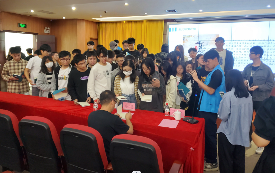 通过展示,他与大家分享了纪录片创作的流程,包括策划、文案创作、前期拍摄、后期制作等步骤,结合实际案例为大家生动诠释了每个环节的创作要点,使得不为大众所知的屏幕背后的故事也精彩呈现出来。海金星导演提示大家,在新媒体时代,面对受众群体变化,记录片影像必须要秉承创作初衷,深入挖掘艺术亮点,在真实世界讲述故事之美。在读者互动环节,海金星导演给予同学们耐心细致的解答。