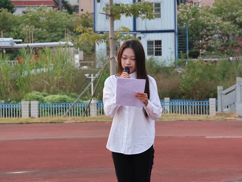 升旗礼毕,来自2023级现代物流管理A班王雅琼同学作为学生代表发表了“弘扬爱国精神,树立爱国之志”为主题的演讲,她对升旗现场的同学们做出呼吁:作为新时代的青年,必须高举爱国主义的伟大旗帜,弘扬爱国精神,树立报国之志,刻苦学习、担当奉献、砥砺前行,在具体的行动和实践中练就过硬本领、锤炼高尚品德,自觉将个人价值与党和国家、人民的期望结合起来,肩负起建设社会主义现代化强国的时代责任!