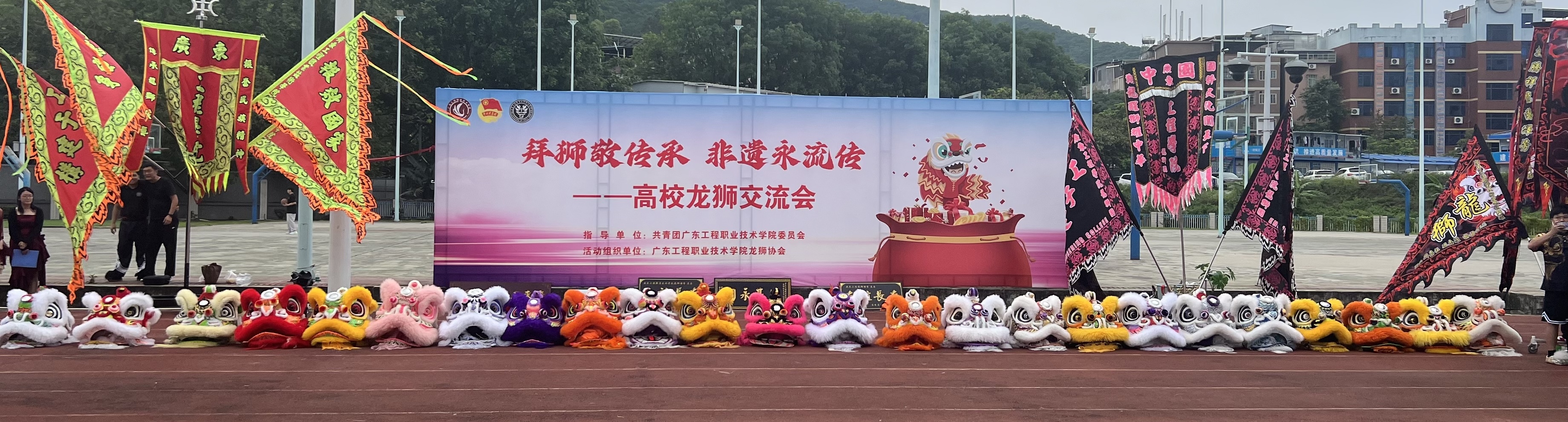 为了弘扬中华民族优秀传统文化,传承中华龙狮精神,在学校领导的大力支持下,在公共课教学部和校团委的悉心指导下,2024年5月18日,龙狮协会在广州校区足球场顺利举办了“拜狮敬传承,非遗永流传”——高校龙狮交流会,为同学们送上了一场精彩纷呈的传统文化盛宴。本次龙狮交流会共有广东金融学院、广东外语艺术职业技术学院、广东食品药品职业技术学院等省内15所兄弟院校的队伍参加。