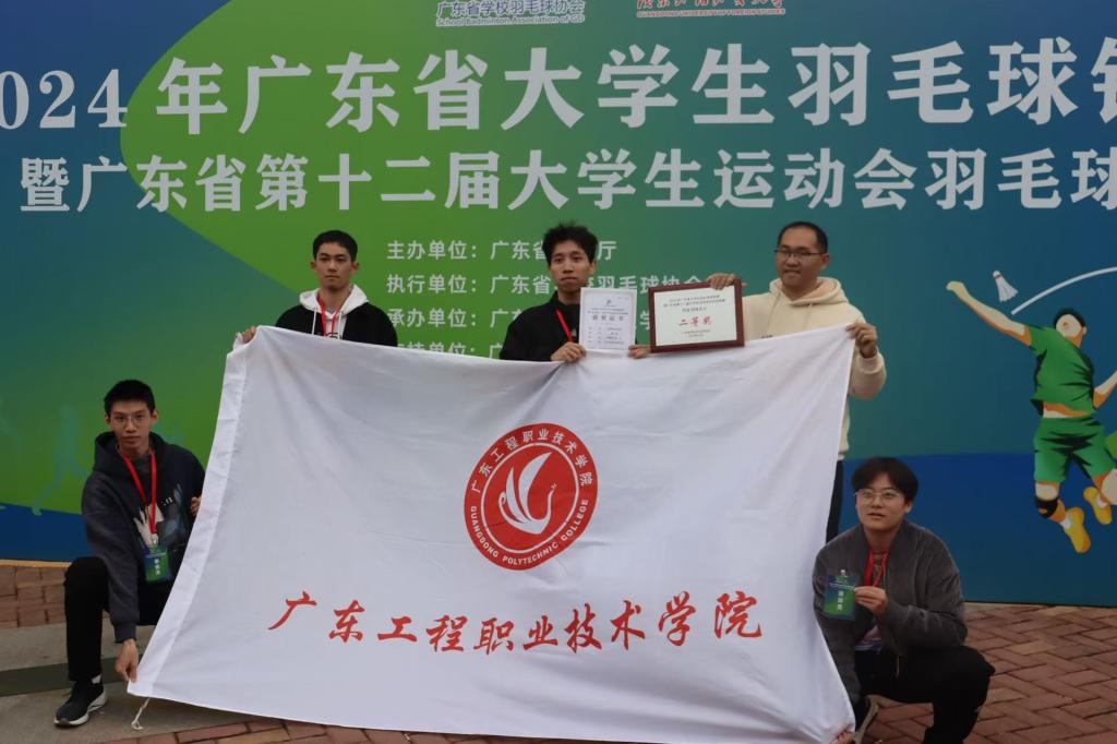 2024年广东省大学生羽毛球锦标赛暨广东省第十二届大学生运动会羽毛球预赛于12月15日在广东外语外贸大学(大学城校区)落下帷幕,本次比赛有来自省内51所大专院校共564名运动员参加丙组7个项目的角逐。我校代表队由公共课教学部别业军教授作为领队,张焘、莫凡两位老师作为教练员,10名队员分别来自信息工程学院、机电(电梯)工程学院、建筑工程学院、财经学院、人工智能学院。我校运动员在比赛中发挥顽强拼搏、坚韧不拔的体育精神,夺得团体总分二等奖,其中:女子双打第二名,男子双打,男子团体,女子团体也冲进16强,顺利进入广东省第十二届大学生运动会羽毛球比赛决赛。