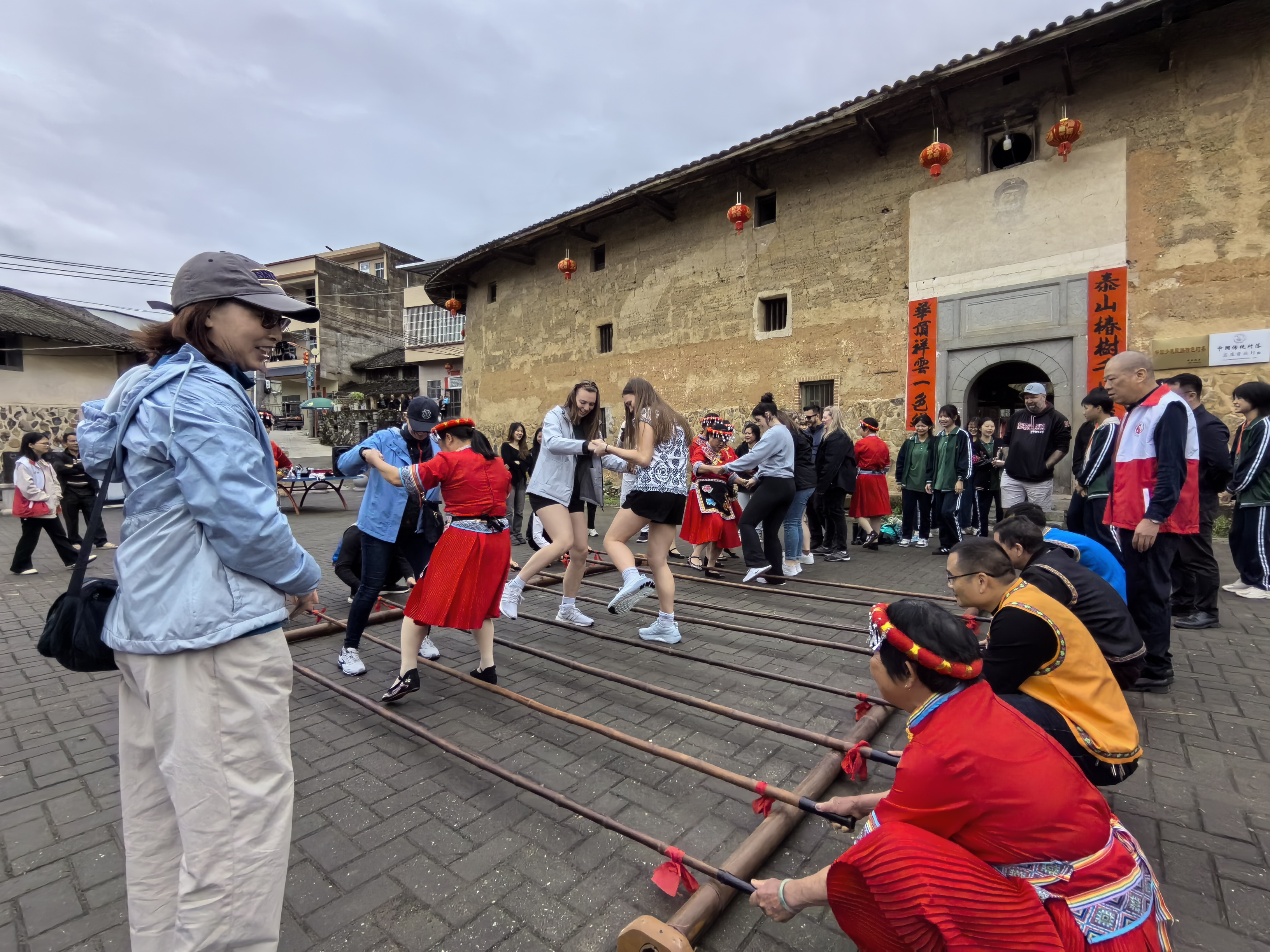 中美青年与蓝屋畲族村民共跳竹竿舞