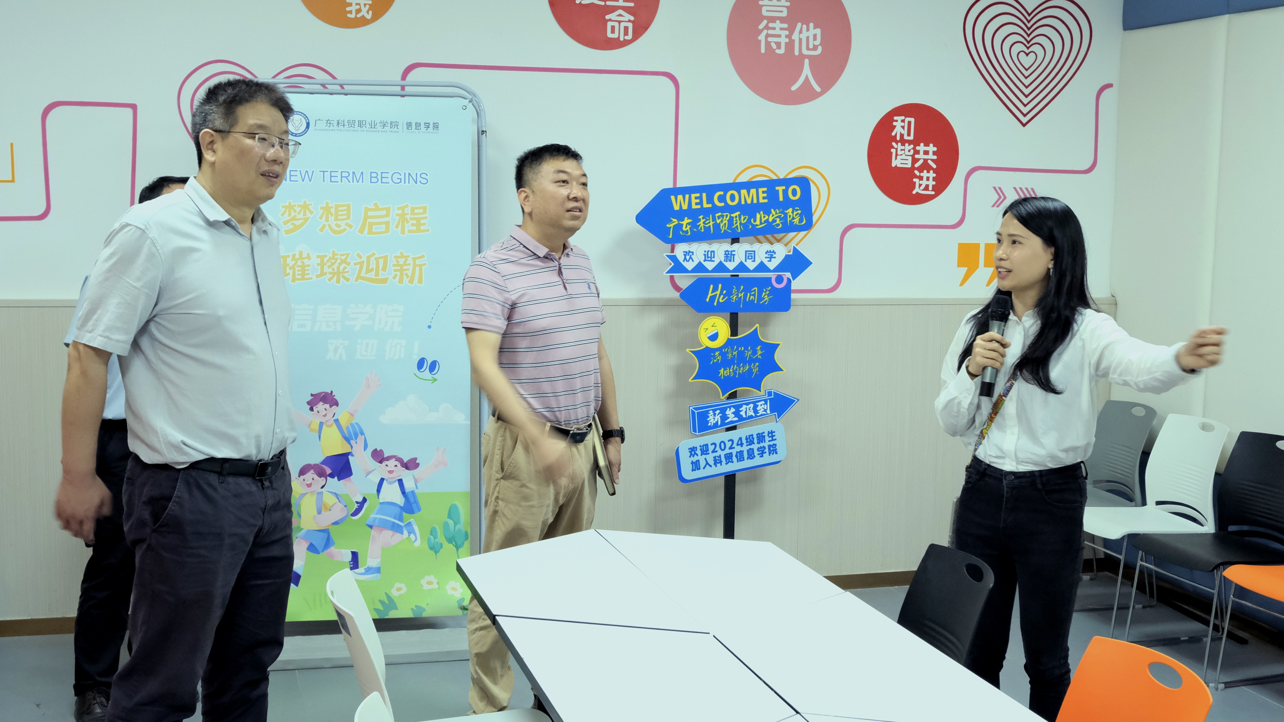 广东科贸职业学院党委副书记李昱,学生工作部、招生与就业指导中心负责人热情接待学校一行。李昱介绍了该校的办学特色和学生工作体系。学生工作部部长阮国安介绍了该校构建“1+2+10+5+N”的“一站式”育人体系过程中的做法和成效,坚持“学生成长发展”为中心,融合“学院+社区”两个载体,搭建十项驱动,打造五育空间,实施多项举措,让校园生活的“小园区”变成学生成长的“大舞台”,形成“三全育人”新格局。会后,大家参观了该校智谷书院和求实社区,双方对智谷书院和求实社区的社区建设历程、建设成果、专业工作室等内容进行了详细交流。