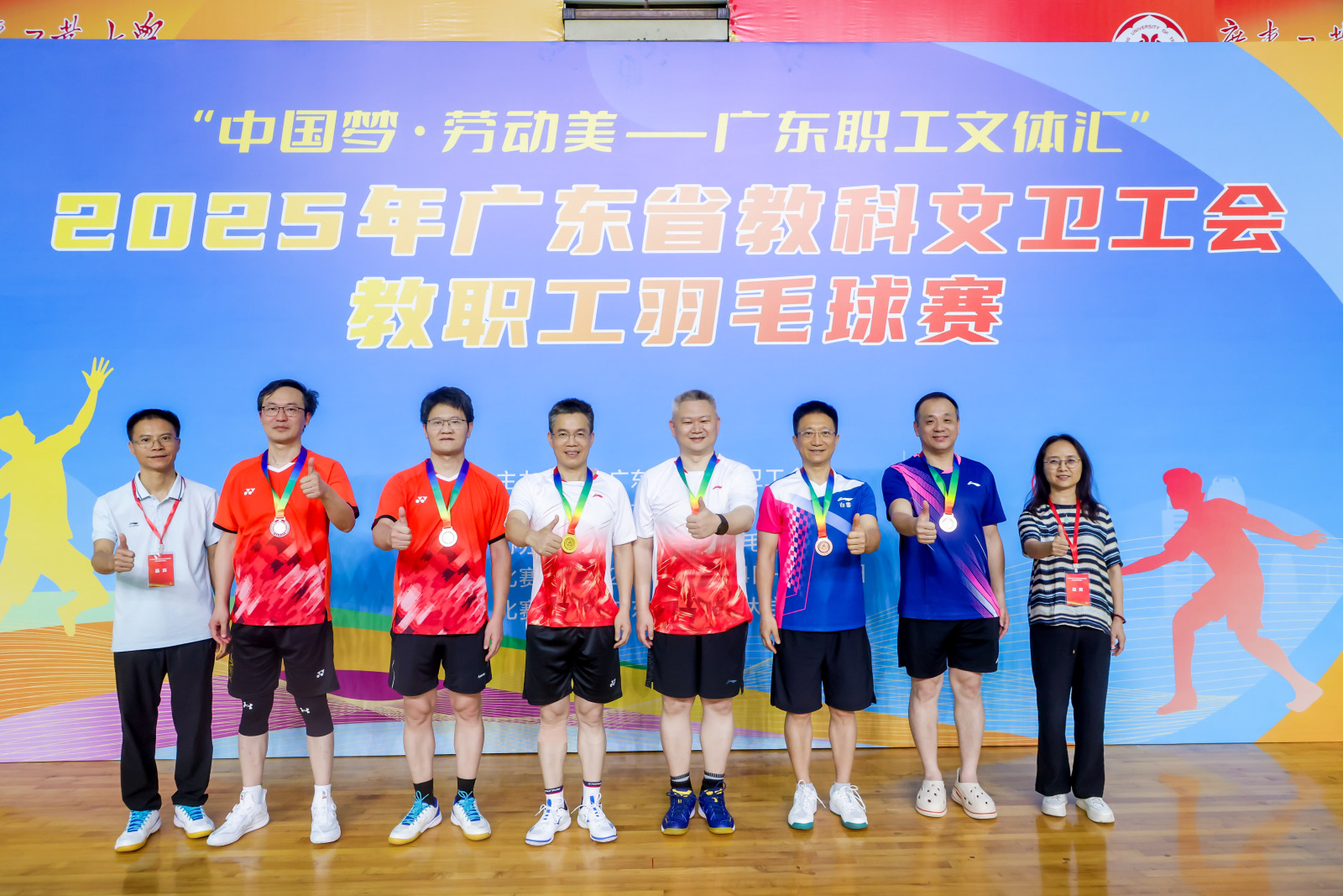2025年6月7日至8日,广东省教科文卫工会教职工羽毛球赛总决赛在广东工业大学举行。本次赛事汇聚了全省教科文卫系统五个片区(本科一、本科二、高职中学、高职中专、附属医院)的前三强及主办方,共16支精英队伍展开巅峰对决。我校教职工在强手如林的赛场奋勇拼搏,捷报频传。