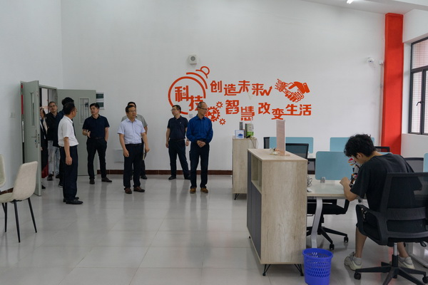 交流会后,黄恩华主席一行实地参观考察了学校大学生创新创业孵化基地、人工智能学院实训室、迅达电梯产业学院和长隆产业学院等实训教学场地。