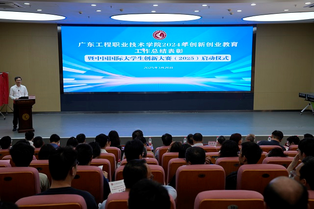 2025年3月26日下午,学校在省职教城校区办公楼报告厅举行2024年创新创业教育工作总结表彰暨中国国际大学生创新大赛(2025)启动仪式,学校党委书记叶忠明,广西师范大学创新创业学院院长蒙志明,学校党委副书记、纪委书记徐振昌,学校党委副书记方燕,粤港澳大湾区青年创新联盟、粤港澳大湾区青年创新中心主席兼执行秘书长黄恩华,学校党委委员、副校长吴志敏,学校党委委员、副校长张永强,广州兆熠数字科技有限公司创始人谢熠、联合创始人许永柯、研发总监梁明锋,2011届校友、广州景颐光电科技有限公司创始人蔡晓东,清远国家高新区凤翔谷众创空间总经理巫克帆,广州华学教育科技有限公司总经理李显意,广州浩博百星光电有限公司总经理吴颇,香港智慧餐饮协会大湾区项目开发负责人王汉彬,香港智慧餐饮协会大湾区智慧餐饮拓展委员会委员长徐志祥以及学生工作部(招生与就业指导中心)、教务部、科学技术部、校团委、创新创业学院等职能部门负责人,各二级学院党委书记、院长、党委副书记、副院长、专业(教研室)主任、负责创新创业工作的辅导员及获奖师生代表工150余人参加了会议。会议由学校党委委员、副校长张小广主持。