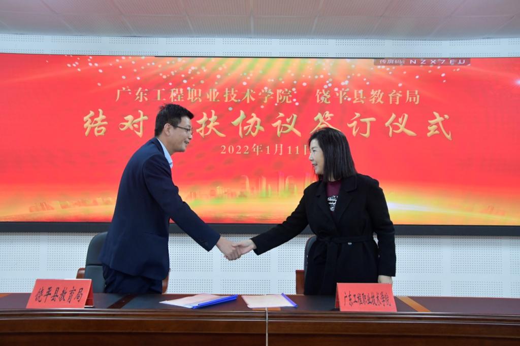 为贯彻广东省推动基础教育高质量发展行动方案和落实省教厅关于做好全口径全方位融入式帮扶粤东粤西粤北地区基础教育高质量发展工作,1月11日上午,饶平县教育局举行广东工程职业技术学院、广东文艺职业学院与饶平县教育局《结对帮扶协议》签约仪式。学校党委副书记、校长李丽,党委委员、副校长揭英荣,广东文艺职业学院党委副书记、校长钟善金,党委副书记邱广林,县政府副县长李少珊、教育局局长陈晓东及三方单位的相关职能部门负责人参加了签约仪式。县教育局党组成员林少秋主持仪式。