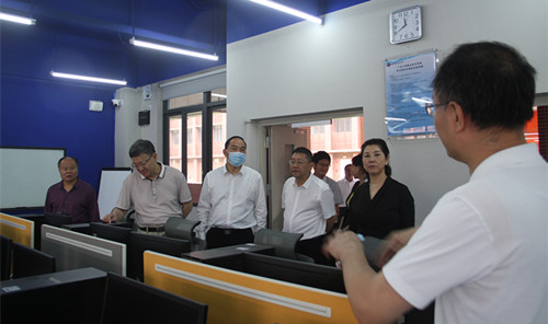 座谈交流结束后,刘科荣、吴教育一行参观了校园,重点考察了长隆产业学院、游泳池、体育馆等地。
