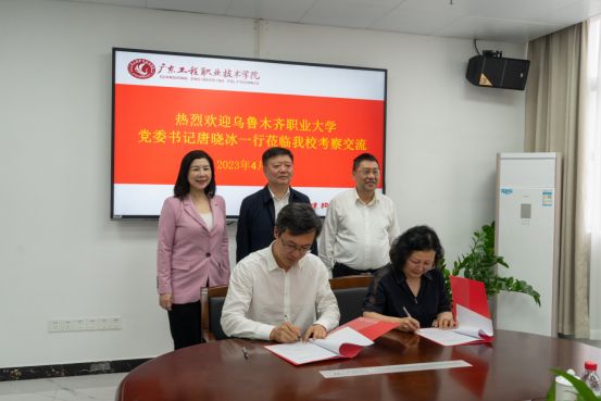 在与会学校领导的见证下,乌鲁木齐职业大学副校长田晓霞与我校副校长张小广分别代表学校签订合作意向书。