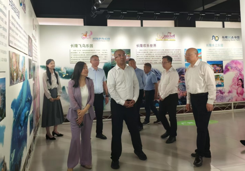 调研组参观了校园,实地调研长隆产业学院建设情况。叶忠明书记详细介绍了学校规划建设情况、专业布局和招生就业情况,着重介绍学校在校企合作、产教融合方面的创新实践,长隆产业学院建设背景、运行模式和人才培养等方面取得的显著成效。凯赛尔·阿不都克热木副主席高度评价了学校校园规划建设,校企协同育人成效,认为长隆产业学院运行模式为新疆文旅产业人才培养提供了重要的参考价值和借鉴意义。