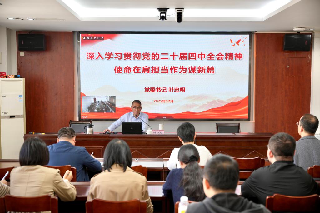 叶忠明书记带领与会党员梳理了党的历届四中全会的发展历程,客观分析了“十四五”时期我国发展取得的开创性进展、突破性变革和历史性成就,并深入研习了党的二十届四中全会的主要内容及重要意义。