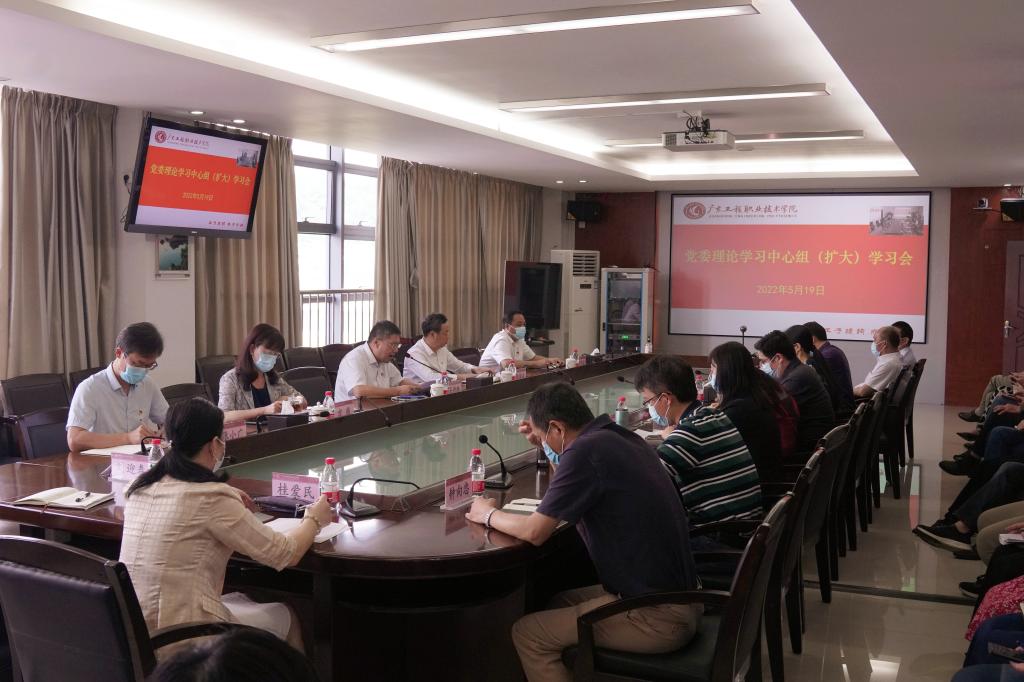 5月19日,学校举办党委理论学习中心组(扩大)学习会,专题学习新修订的《中华人民共和国职业教育法》,校党委书记吴琦琳主持会议。校长李丽作了领学发言,建筑工程学院院长王洪波作了学习交流发言。学校全体校领导,全体中层干部参加了会议。学习会采用视频连线方式在广州校区和省职教城校区同步举行。