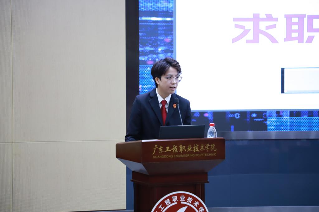 4月24日上午,正值全国首个“全民阅读活动周”,由市委依法治市办、市司法局、市法院联合举办的“青春逐梦 法护前程——大学生求职法律风险预防暨第二届清远法治文化高校行系列活动第五场——防范求职诈骗主题宣讲暨法治阅读实践活动”走进广东工程职业技术学院。莅临本次活动的有清远市司法局四级调研员秦小明、清远市中级人民法院二级法官黄洁怡、清远市司法局普法科科长郑茵、学校团委兼职副书记李艳、学校总务后勤部(保卫部)朱天海、大学生法律爱好者协会指导老师黄鹏腾、马克思主义学院专任教师谢炜桢、学校团委专职团干李宇航和清远市司法局、清远市中级人民法院工作人员。活动将法治宣传与全民阅读深度融合,为青年学子送上一场兼具法治温度和书香气息的实用法治课。