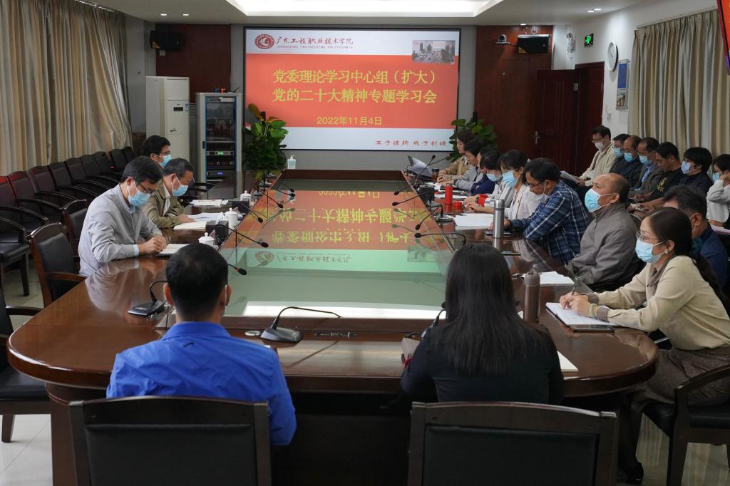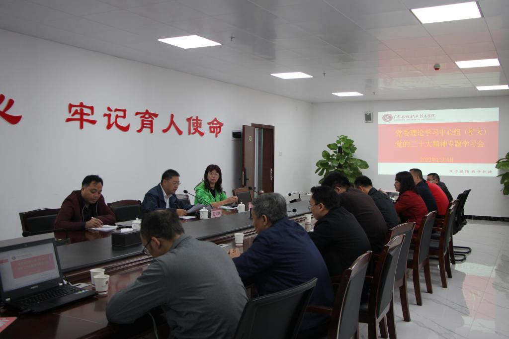 吴琦琳书记强调,要深刻领会党的二十大对教育工作的战略部署,进一步增强为党育人、为国育才的责任担当。党的二十大报告对实施科教兴国战略,强化现代化建设人才支撑作出重大战略部署,是我们做好学校各项工作的根本遵循。我们要深刻认识到在新征程中更加凸显的教育地位和作用、更加明确的教育目标和方向、更加艰巨的教育使命和任务、更加有力的教育支撑体系,奋勇前进,办好人民满意的高等职业教育,为加快建设教育强国作出新贡献。要全面落实党的二十大部署要求,自觉将学习成效转化学校事业高质量发展的强大动力。加强党对教育工作的全面领导,落实立德树人根本任务,在落实科教兴国战略、强化新时代建设人才支撑上争取更大突破。要筑牢安全防线,全力以赴保障师生安全和校园稳定。要持续兴起学习宣传贯彻党的二十大精神的热潮,通过党委理论学习中心组学习、辅导报告会、专题教育培训、宣传宣讲等形式,引导全校师生学深悟透党的二十大精神,推动党的二十大精神在学校落地生根、结出丰硕成果。