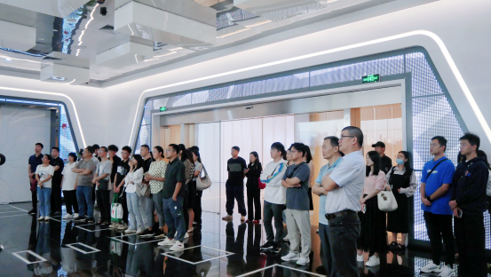 在中德工业服务区(三龙湾)园区展厅,学生们跟随讲解员认真聆听三龙湾的建设历程及发展规划,同时通过观看展厅内的图片、文字、影像,了解了中德工业服务区在对外合作、搭建重大平台项目、举办国际化品牌活动、服务企业双向交流等方面的情况,直观感受到粤港澳大湾区科技发展和先进生产力。