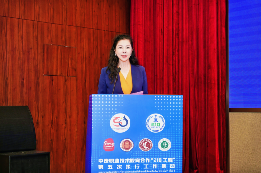 李丽校长在致辞中展示了学校的办学特色与国际化发展成果。她指出,本次会议聚焦人工智能与专业建设深度融合,恰逢中泰建交“金色五十年”,具有重要的前瞻性。面向职业教育国际化的新时代,学校将积极参与中泰职教在相关领域的创新实践。她倡议,中泰同仁秉持“共商标准、共建资源、共育人才”的行动纲领,携手培养适应产业发展需求的、具有国际视野的复合型高素质技术技能人才。