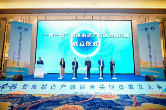 大会举行了“一带一路”智能制造产教融合共同体成立仪式,刘宝利先生、李金俊处长、李丽校长、张芮菊总经理、郑子彬院长共同按下启动按钮,这标志着共同体正式进入运行阶段。