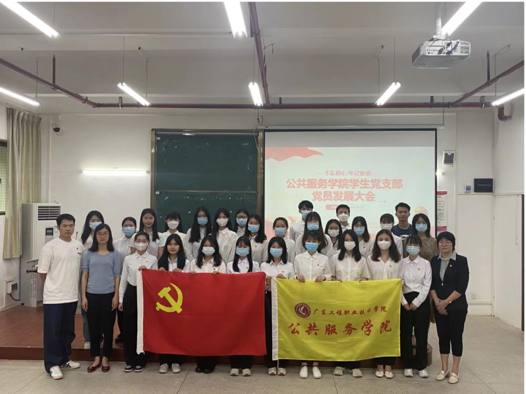 2022年5月27日中午,公共服务学院学生党支部在教学楼Q1﹣105召开了党员发展大会,参加本次大会的有公共服务学院学生党支部全体党员及20位发展对象,大会由支部书记许世娟主持。