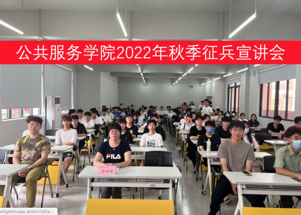 为激发学生报效祖国、献身国防的热情,提高兵员征集质量,公共服务学院于6月28日召开2022年秋季征兵宣讲会。学校武装部赵罡宇、学院党总支副书记佘细花、辅导员何月华、优秀退伍复学士兵代表以及有意愿应征入伍的学生代表参加此次宣讲会。