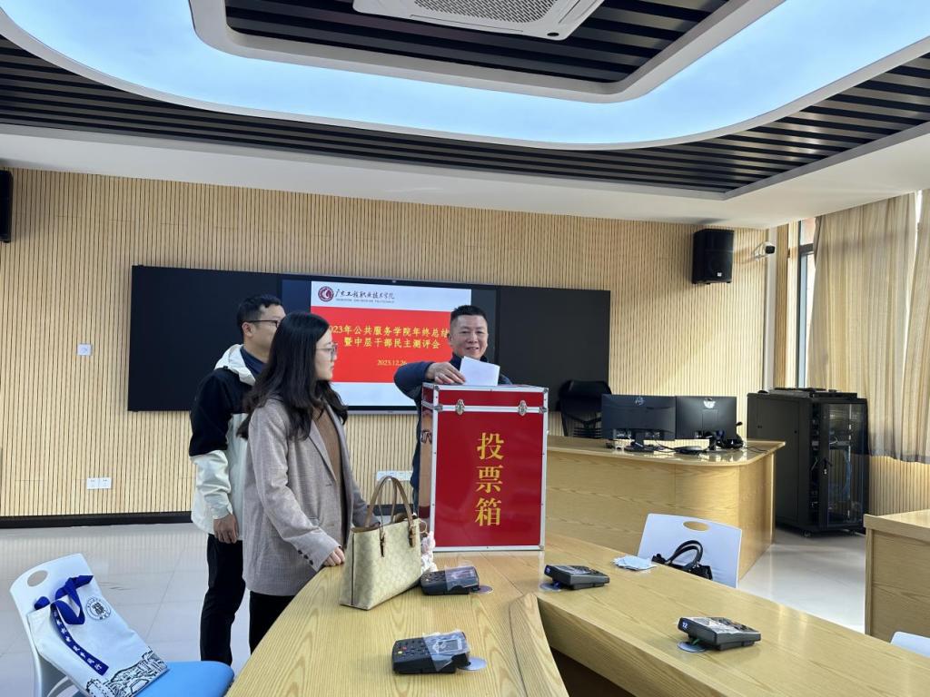 会议首先进行学院中层干部的民主测评,学院教职工对学院党政领导班子进行无记名投票。