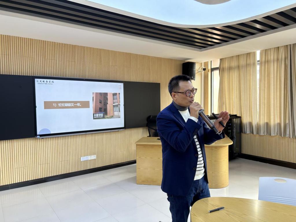 12月26日下午,公共服务学院在省职教城校区教4507召开期末工作总结大会,全体教职工参加会议。会议由学院党委书记吴文丰主持。