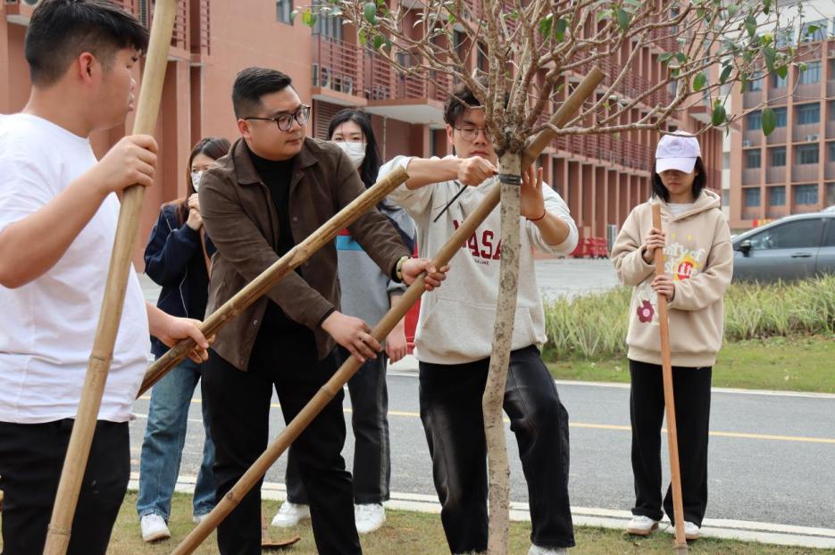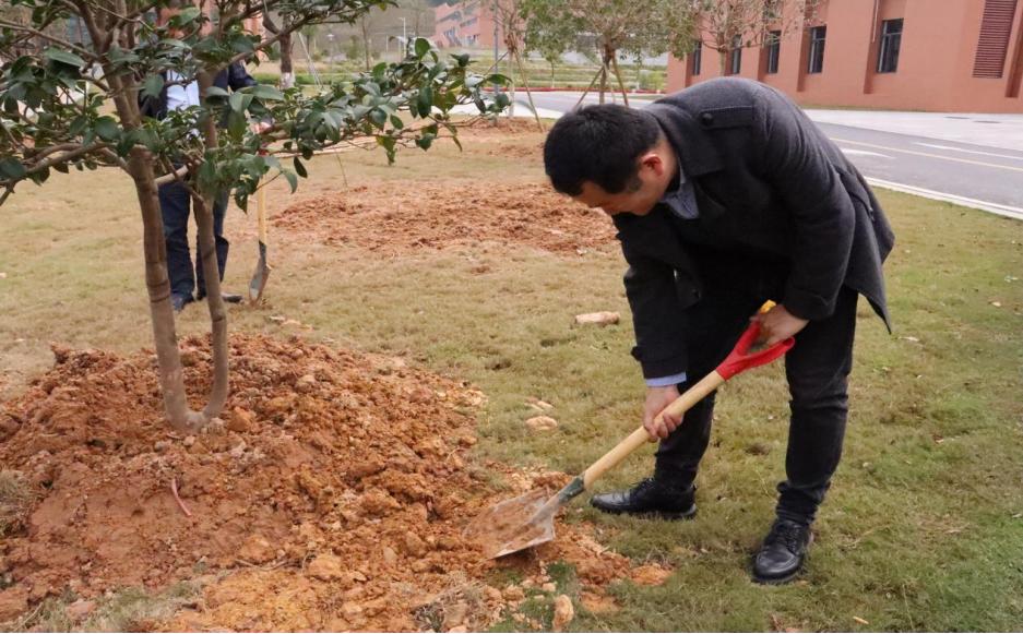 岭南春来早,植树添绿正当时。为深入贯彻落实习近平生态文明思想,增强师生的生态意识、环保意识,积极营造建设乡村校园的浓厚氛围,3 月13日,公共服务学院党委组织学院师生在行政楼广场中间空地开展校园植树活动。