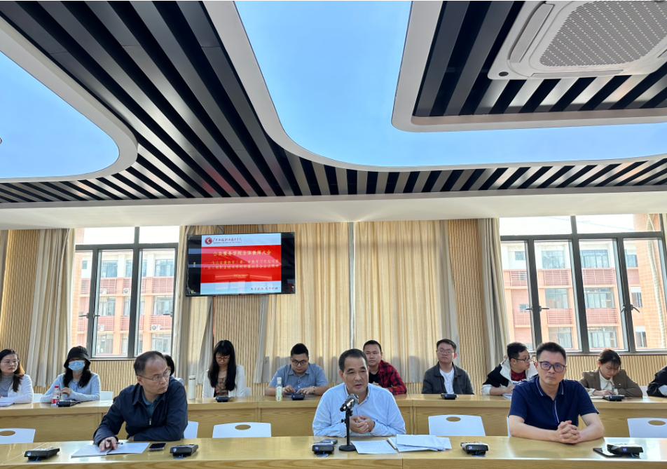 4月9日,公共服务学院在省职教城校区4507,通过线上线下会议的方式,召开全体教师大会,传达省委教育工委、省教育厅党组第一巡察组巡察广东工程职业技术学院党委动员会会议精神以及学校关于会风会纪会议精神,会议由公共服务学院党委书记吴文丰主持。